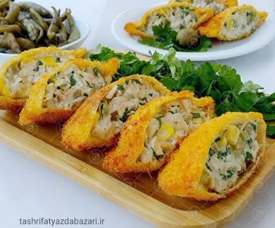یک ترکیب خوش طعم و شکیل از نان تست ،سینه مرغ ، خیارشور و ذرت که میتواند زینت بخش میز پذیرایی مراسم شما باشد.