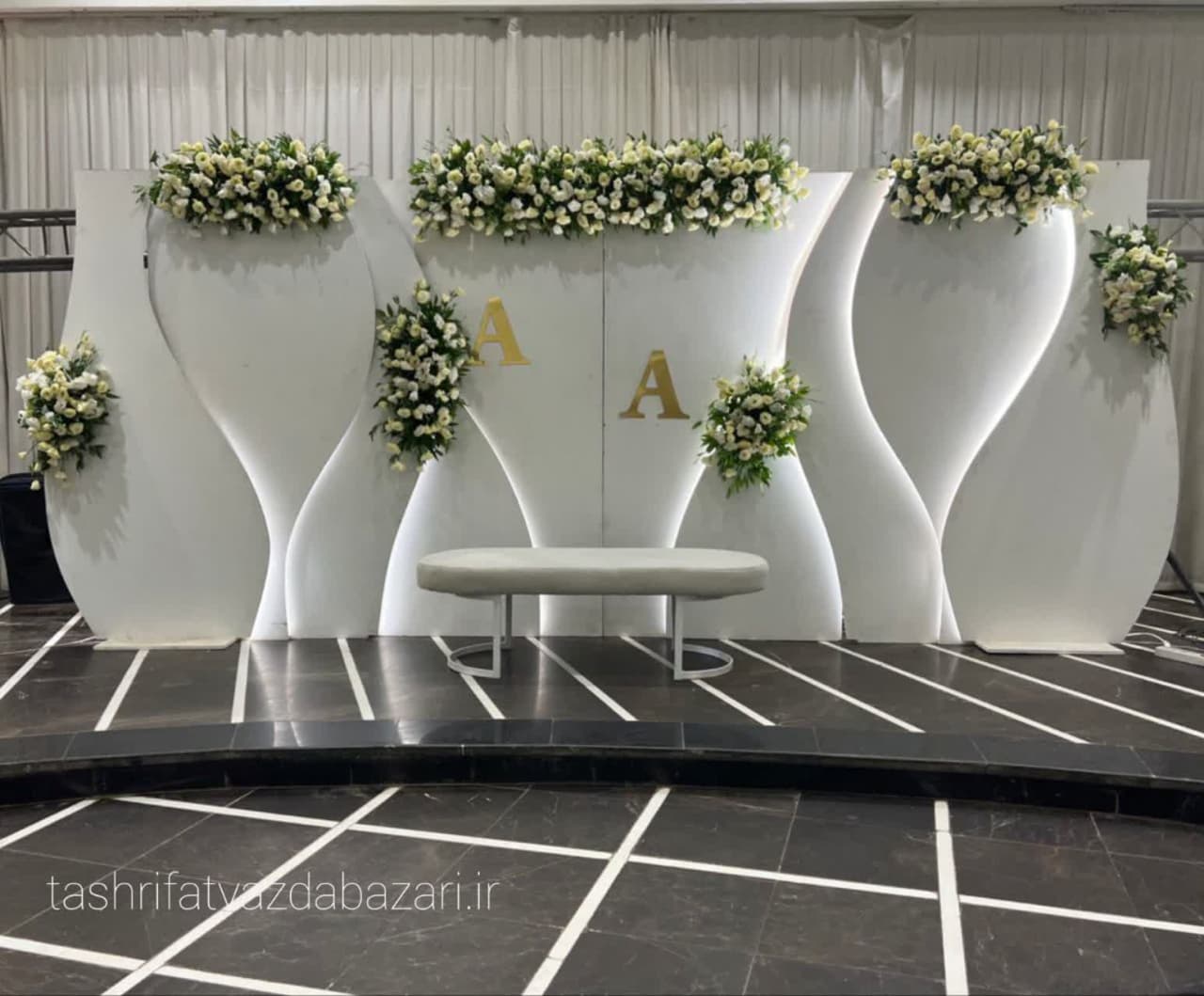 جایگاه ازجنس چوب میباشد و دارای ریسه نوری کنار هر تکه میباشد. قابلیت چیدمان به طرحهای مختلف را دارد . رنگ جایگاه سفید است اما در صورت تمایل میتوانید درخواست تغییر رنگ را ثبت کنید. که هزینه تغییر رنگ هم به اجاره دکور اضافه خواهد شد.قیمت ذکر شده 8 میلیون تومان و برای اجاره یک روز میباشد.